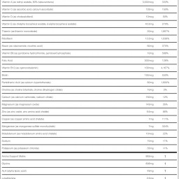 - Platinum Multivitamin cuenta también con una serie de minerales como el calcio, zinc, manganeso, cobre, potasio o molibdeno. Estos minerales son fundamentales en nuestro organismo y necesitan ser ingeridos a través de la dieta o a través de suplementos nutricionales.