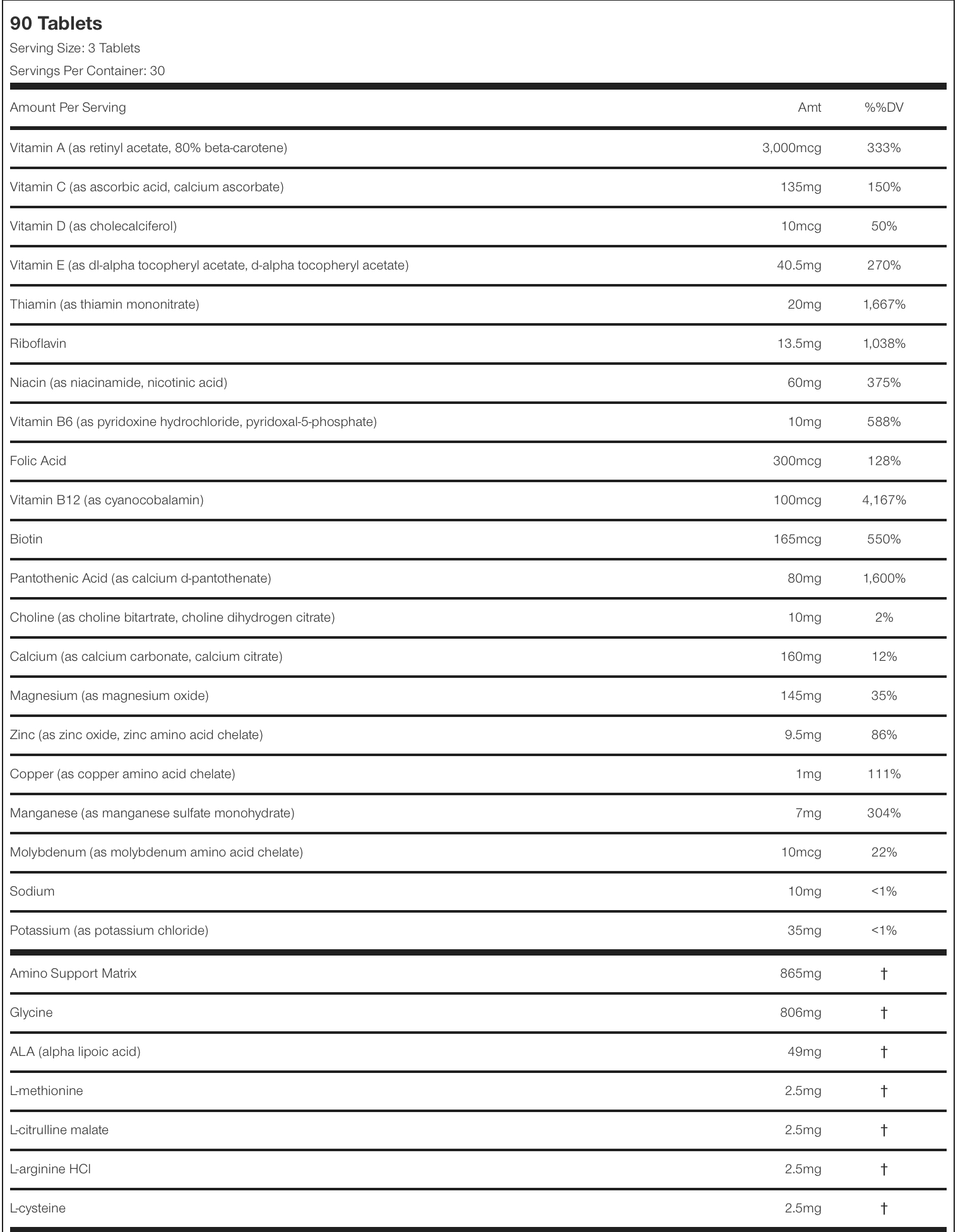 - Platinum Multivitamin de Muscletech constituye una fórmula única de vitaminas y minerales que, además, cuenta con una matriz de soporte a base de 850mg de aminoácidos, una matriz herbal, un complejo enzimático así como importantes antioxidantes.