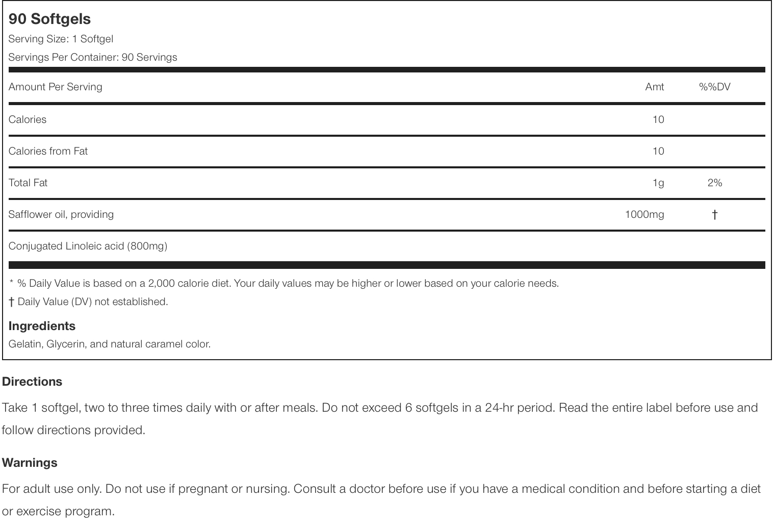 - CLA Pure 1000 (Ácido Linoleico Conjugado Puro) apoya la pérdida de peso y mejora la composición física. Se ha demostrado que el CLA ayuda a aumentar la masa magra cuando se combina con un programa de ejercicio adecuado y un plan nutricional saludable.