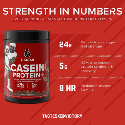 - - Mezcla de proteínas de absorción lenta: la caseína de seis estrellas es una fórmula de proteínas mezcladas premium que alimenta tus músculos durante 8 horas, con alto valor biológico y proteína de liberación sostenida. - Esto la convierte en la proteína perfecta para cualquier momento del día o la noche