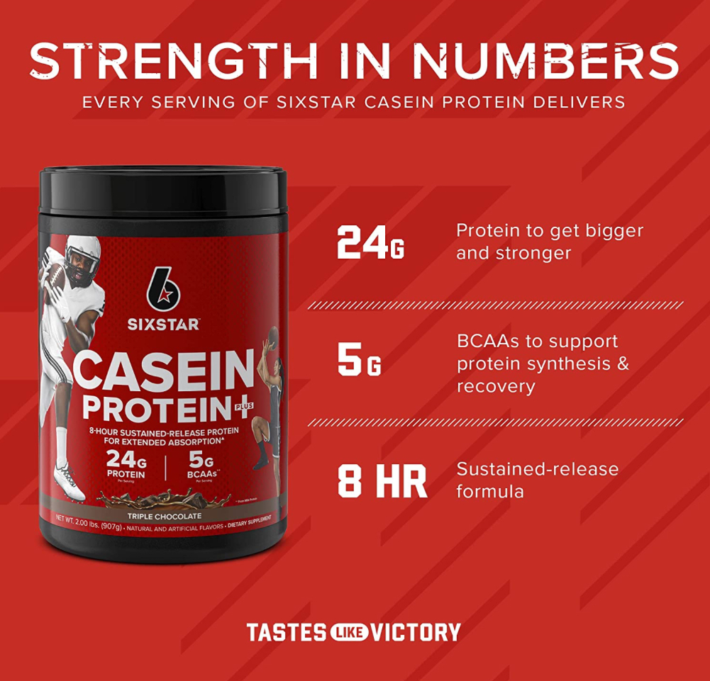 - - Polvo de proteína de caseína: el polvo de proteína de caseína de seis estrellas está diseñado para alimentar a tus músculos la mezcla de proteínas de la más alta calidad disponible. Cada porción ofrece 0.92 oz de mezcla de proteínas tomadas de múltiples fuentes con tasas digestivas variables