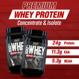 100% WHEY es un combustible puro para la construcción muscular y perfecto para tus objetivos de construcción muscular. Contiene una mezcla premium de 24 g de concentrado de proteína de suero y aislado de proteína de suero por porción. Proporciona 11,3 g de EAA y 5,3 g de BCAA por cucharada. Se digiere fácilmente. Tu cuerpo puede utilizarlo rápidamente para apoyar el crecimiento muscular, la fuerza, el rendimiento y la recuperación.