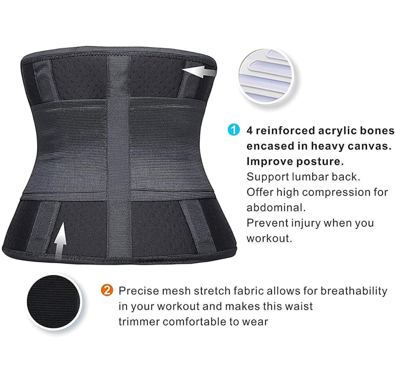 - ►Cintura de cierre de velcro duradero de doble ajuste para mejorar la compresión alrededor de tu barriga y ajuste. Ya no te preocupes por que el velcro se caiga cuando haces ejercicio, porque el velcro y el material interior están cosidos juntos. La faja reductora es naturalmente flexible para ajustarse a tu tamaño y forma y contorneada para adaptarse a tu cintura cómodamente durante el ejercicio. Un cinturón de elastano proporciona más capacidad de cincha para este entrenador de cintura.