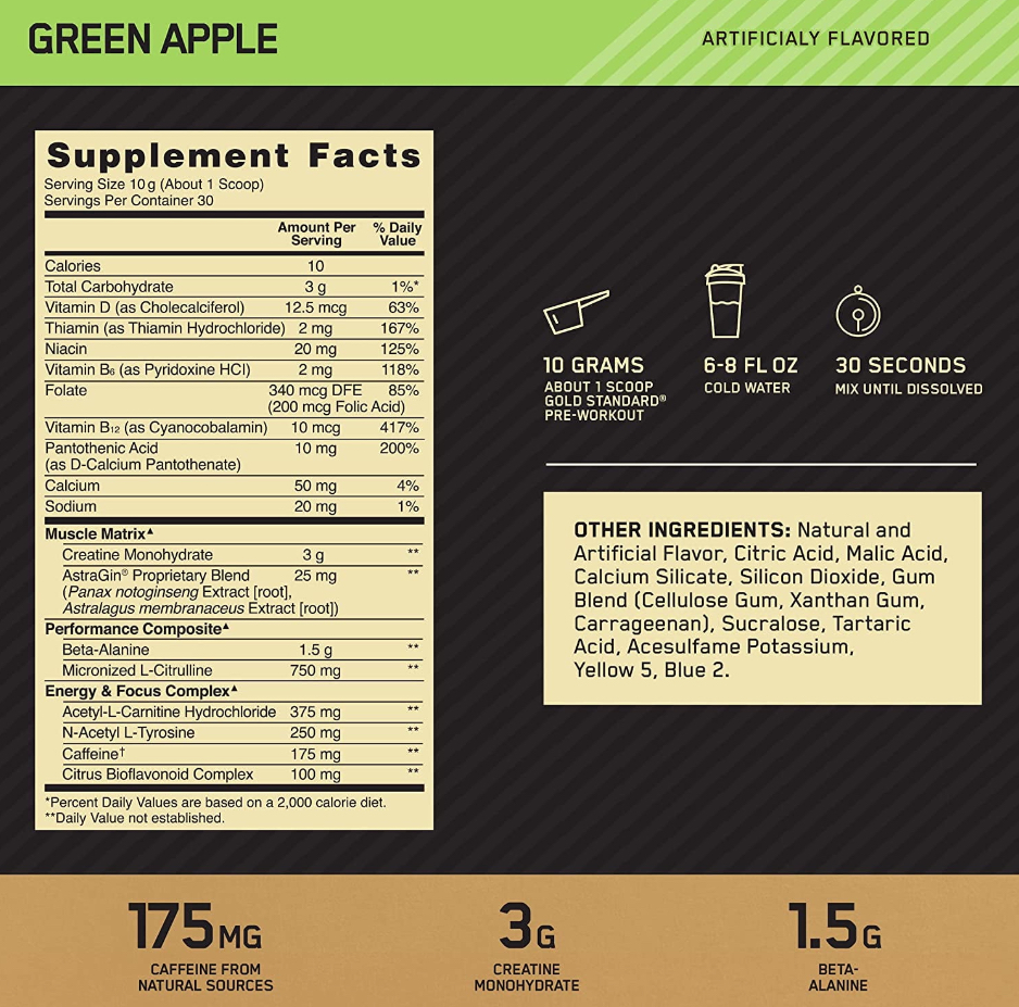 El Gold Standard Pre-Workout de ON libera energía amplificada, enfoque y apoya una mayor resistencia para ayudar a alcanzar el pináculo de tu juego, aplastar tu próximo set, obtener esa última repetición y lograr ganancias reales.